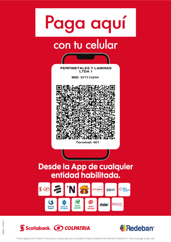 Puedes realizar todos tus pagos online a PERFIMETALES desde cualquiera de las opciones que tenemos a tu alcance por medio de la plataforma de Bancolombia o Scotiabank Colpatria.